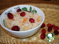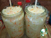 Оставить банки с капустой для брожения при комнатной температуре на 40 часов. Для того, чтобы капуста получилась хрустящей и светлой, необходимо, чтобы выходил бродильный газ. Для этого я использую деревянные, ничем не покрытые китайские палочки. Если держать в тепле меньше по времени, то процесс брожения не завершается, и этот продукт что угодно, но не квашеная капуста. В самом конце брожения следует добавить клюкву и в таком составе убрать в холодильник |