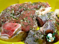 Сдабриваем мясо с обеих сторон маринадом и оставляем отдыхать. Чем дольше, тем лучше. У меня мариновалось около часа. |