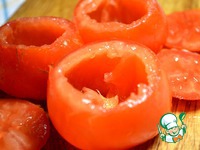 У томатов срезать "крышечку", вычистить от семян и перегородок чайной ложкой |