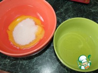 Отделяем желтки и белки. В желтки добавляем сахар, в белки соль. |