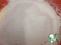 К желткам добавляем просеянную муку, хорошо перемешиваем. |