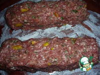 Хорошо вымешиваем и делим фарш на две равные части. Формируем два рулета. Смазываем форму маслом, выкладываем рулеты. Ставим в духовку на 15 минут (170 градусов). |