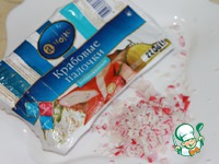 Мелко порубленные крабовые палочки A`море смешиваю со сливочным творожным сыром Филадельфия |