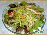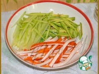 Описание: Бытует мнение, что из крабовых палочек кроме салата ничего и не приготовишь, это не так, наши девочки-поварята это уже доказали, но я осмелюсь предложить Вам именно салат, необычный, но свежий и вкусный.