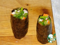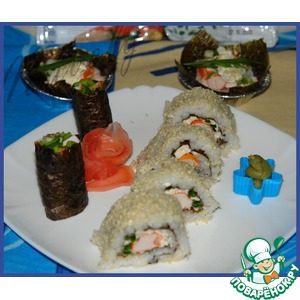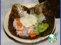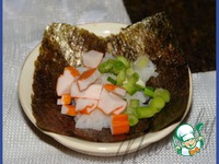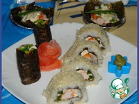Описание: Вдохновившись недавним удачным опытом в приготовлении суши и роллов, я решила экспериментировать с начинками, и вот один из наиболее удачных вариантов - с крабовыми палочками. Очень вкусно!