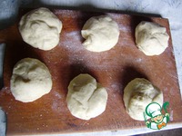 Как тесто подошло, делим его на 6 частей и даем отдохнуть 5-10 минут. |