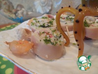 Описание: Легкая закуска из кальмаров с крабовыми палочками, приправленных кунжутом и цитрусовой ноткой лайма, никого не оставит равнодушным.