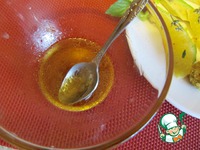 Ингредиенты для заправки: сок апельсиновый, сок лимонный, мед, соевый соус, масло оливковое, соль, перец по вкусу - соединить и тщательно перемешать, убрать в холодильник. |
