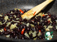 Добавить фасоль, соль и перец по вкусу. Начинку перемешать, прогреть и снять с огня. |