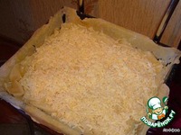 После того, как смазан второй слой маслом, выложить на него часть сыра. |