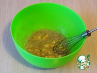 Добавить муку. Перемешать до однородности и понемногу добавлять молоко. Тесто по густоте должно быть как сметана. |