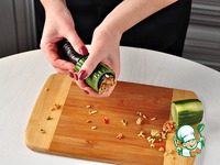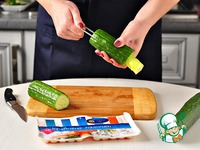 Пока остывает рис и овощи, подготовим огурцы. Нам понадобится нож, которым вырезают сердцевину у болгарского перца, баклажанов и т. д. |