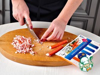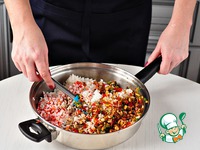 Смешать остывшие овощи, рис, крабовые палочки. Посолить по вкусу. |