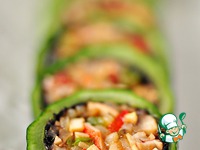 И последнее - ювелирная работа)) Рисовые роллы аккуратно ввести в подготовленные огурцы вращательными движениями))) (не смейтесь, не знаю, как по-другому написать)) |