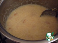Добавить сахар, перемешать. Помешивая, добавляем молоко. |
