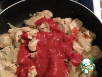 Самое интересное - соус! В оригинальном рецепте вместо томатной пасты используется томатный сок, у меня его не оказалось, поэтому я разводила томатную пасту кипяченой водой. |
