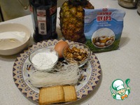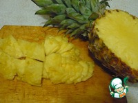 Для этого по краю выкладываем ананасы. Фунцозу ломаем, иначе не удобно будет есть и формуем гнездо. Можем посыпать тертой цедрой лайма. |