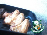 При подаче укладываем пару крылышек, добавляем гарнир, сбрызгиваем лимонным соком, украшаем и... Приятного аппетита.