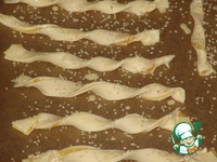 Обмазываем взбитым желтком, смешанным с водой, посыпаем кунжутом |