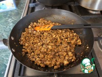 Добавить грибы и все вместе обжарить. Лишний сок слить. Посолить и поперчить. |