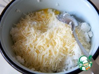 Когда вода хорошо стечет, выложить рис в миску, добавить яйцо и натертый на крупной терке пармезан, перемешать. |