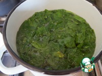 Шпинат отварить в подсоленной воде, откинуть на сито и отжать. |