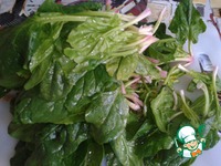 Шпинат помыть, нарезать крупно. Кладем в кастрюлю с налитым предварительно оливковым маслом. |