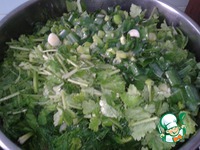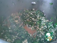 Зеленый лук тоже туда. Ставим на огонь на 5 мин. |