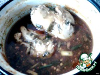 В кастрюльку наливаем бульон добавляем резаный порей, душистый перец, мускатный орех, лавровый лист. Даем закипеть и укладываем наши бедрышки. Тушить на малом огне минут 20. |