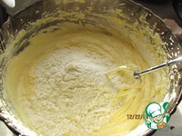 Мука (150 гр) вместе с крахмалом (50 гр) просеивается 3 раза через сито и добавляется в тесто |