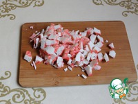 Крабовые палочки измельчим. |