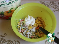 Все смешаем с майонезом. И начиним этой начинкой чипсы. Выкладывать начинку лучше непосредственно перед подачей. |