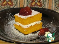 А можно прослоить чем угодно, любым вареньем, кремом... Я сделала прослойку маскарпоне. Получилось очень сливочно. Приятного аппетита! |