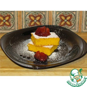Даём немного остыть, режем и выкладываем на тарелочку. Сверху посыпаем сахарной пудрой. Можно съесть как коржик... |