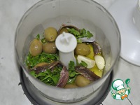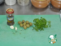 Для соуса понадобится: оливки, анчоусы, петрушка, оливковое масло, чеснок. |