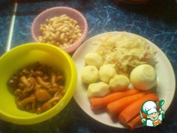 Вот всё, что нам нужно для борща, кроме свеклы, так как она уже на сковородке. :) |