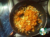 Лук мелко режем, морковь трём на крупной тёрке и обжариваем на растительном масле |
