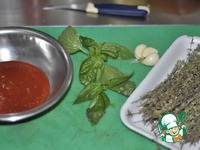 Готовим соус: понадобится тимьян, чеснок, соус наполетана, базилик - всё порубить и подогреть на сковороде |