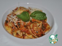 Так же проделываем и с соусом песто: прогреваем, смешиваем, выкладываем, украшаем и посыпаем. Наши капеллетти готовы. Приятного аппетита! |