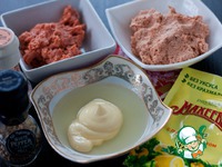 4 ст. л. желированного майонеза добавить к измельченной отварной рыбе, оставшиеся 3 ст. л. - к копченой. Перемешать. |