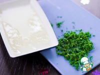 2 листочка желатина замачиваем в холодной воде, укроп мелко режем |