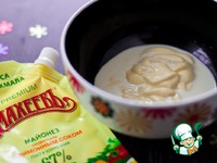Смешиваем майонез со сливками. Для этого блюда оптимальным вариантом будет майонез с лимонным соком от МахеевЪ. |