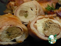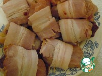 Затем в бекон. Сразу предупреждаю, консистенция получится почти живая. Но это только пока они сырые. Потом под воздействием тепла все сожмется, удерживая друг друга. |