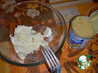 Готовим крем: взбиваем добела масло сливочное и добавляем сгущенное молоко, охлаждаем. |