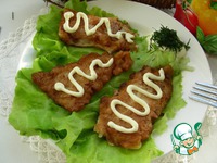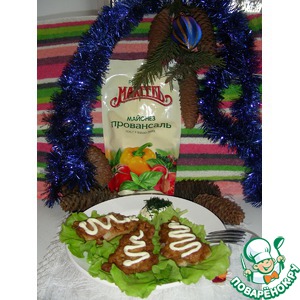 Укладываем рыбку на листья салата. Украшаем майонезом "Махеевъ" провансаль, посыпаем укропом. Хлеба к такой рыбке не надо. |