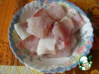 Режем филе пангасиуса на кусочки, немного солим, т. к. соль у нас ещё и в кляре будет. Даём постоять несколько минут. |