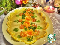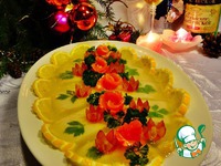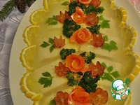 Украсить готовое заливное веточками петрушки и розочками из малосольной сёмги. Всё! Приятного аппетита и с наступающим Новым годом!!! |