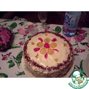 Изюмом, предварительно промытым и чуть распаренным, посыпайте уже смазанный кремом слой торта и накрывайте вторым пластом. И так далее.