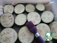 Для начала баклажаны нарезать кружочками. Выложить на противень, смазать растительным маслом и запечь минут 20, до готовности. Слегка посолить |