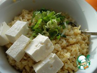 Зеленый лучок и фету нарезать и перемешать с булгуром. |